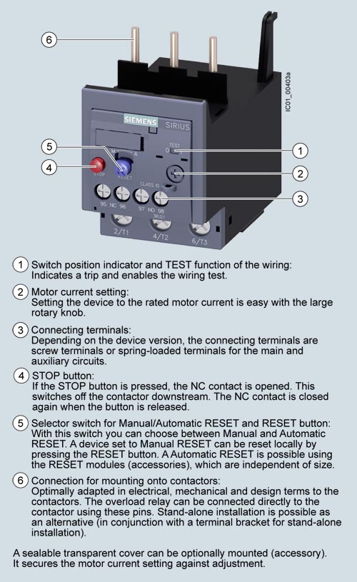Rơ le quá tải nhiệt 3RU21 lên đến 100 A đã được thiết kế để cung cấp bảo vệ phụ thuộc vào dòng điện cho các tải có khởi động bình thường chống lại sự tăng nhiệt độ cao không cho phép do quá tải hoặc mất pha.